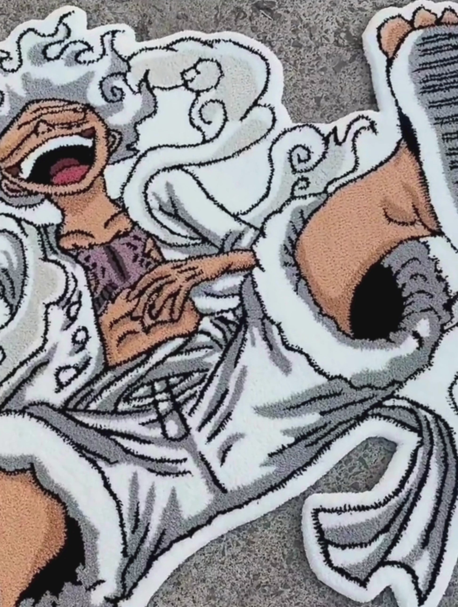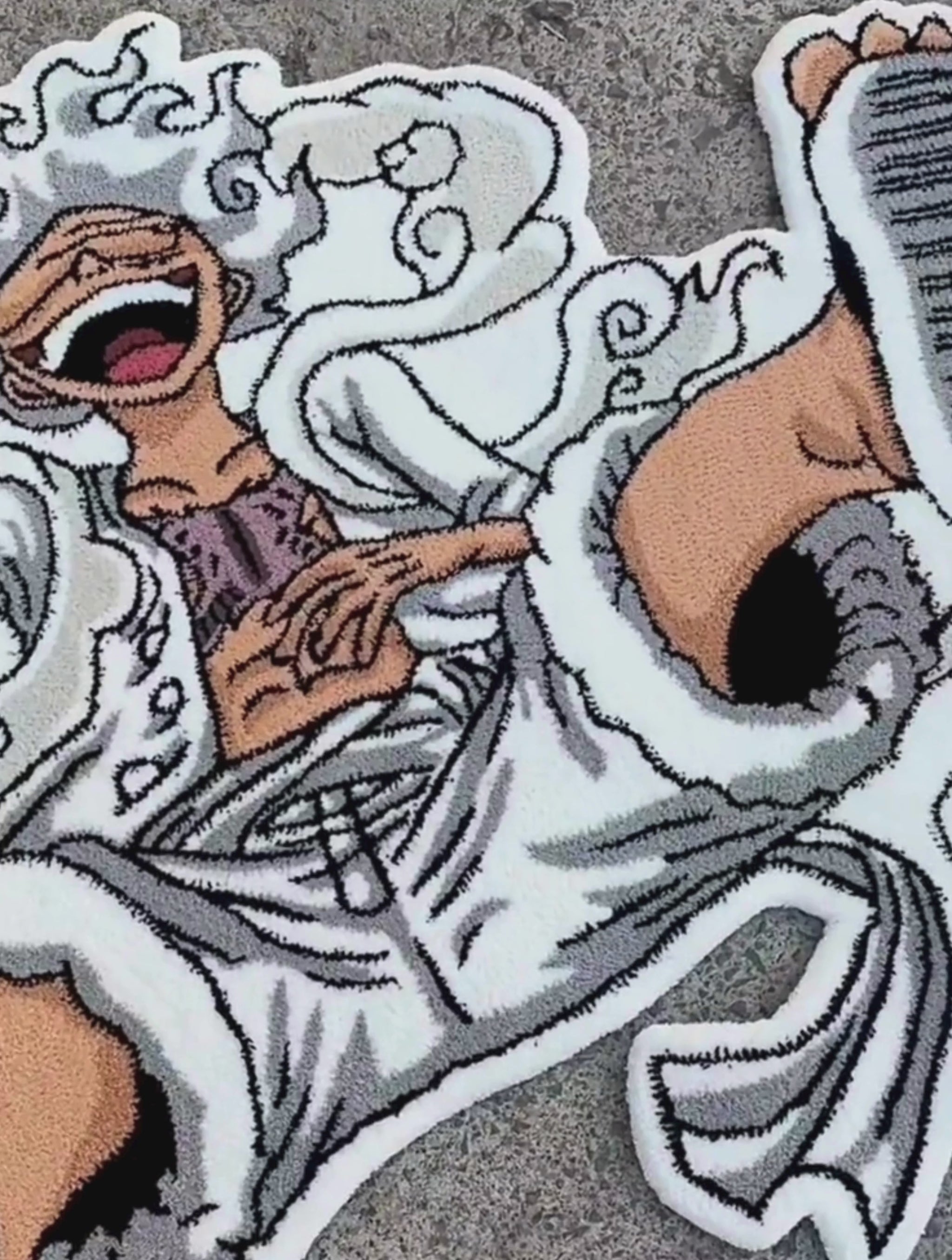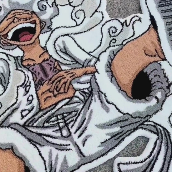 Luffy in his most unhinged form, now immortalized as a hand-tufted rug. The custom die-cut silhouette follows every curve of the design — this isn't a rectangle with a print, it's a full art piece for your floor. One Piece fans, this one's for you.